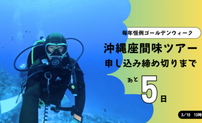こんにちは!ダイブテリーズです! ゴールデンウィークに予定している「毎年恒例 沖縄・座間味 …