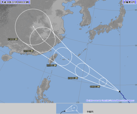 台風8号の予想進路が少し南寄りになりました。