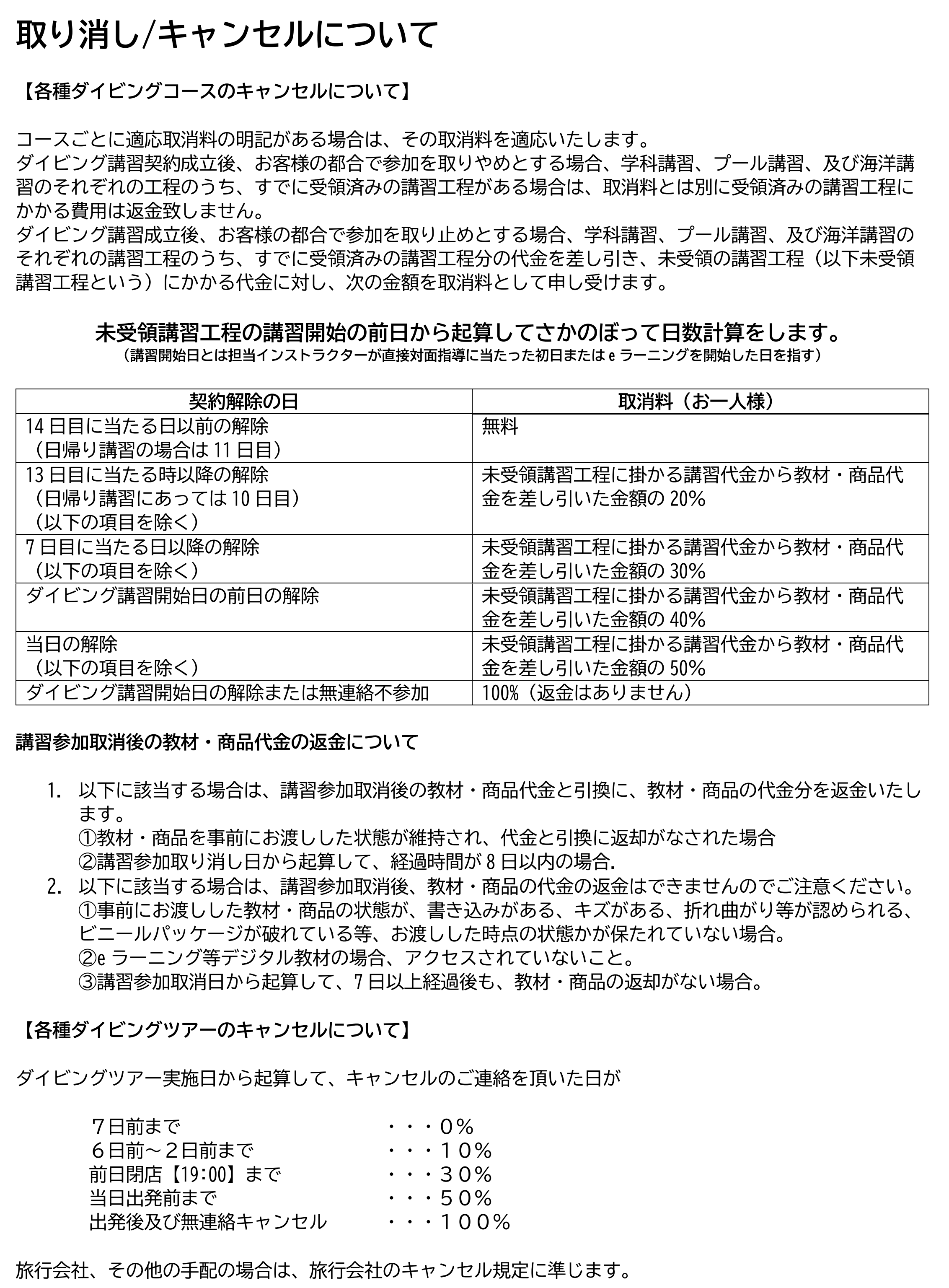 キャンセルについてのお知らせです。