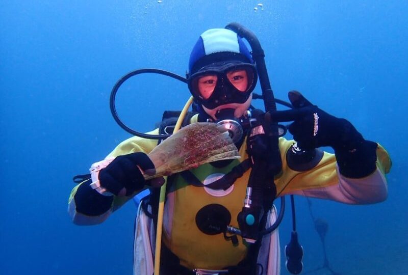 みなさん、こんにちは。 皆さんはタイラギという貝、ご存知ですか? 観察してきた貝でしたが、コブダイにでも引っ張り出されてしまったのかな? 貝殻だけが、今大瀬崎の水中に転がっています。 思わず、AOW講習の学生さんたちに持
