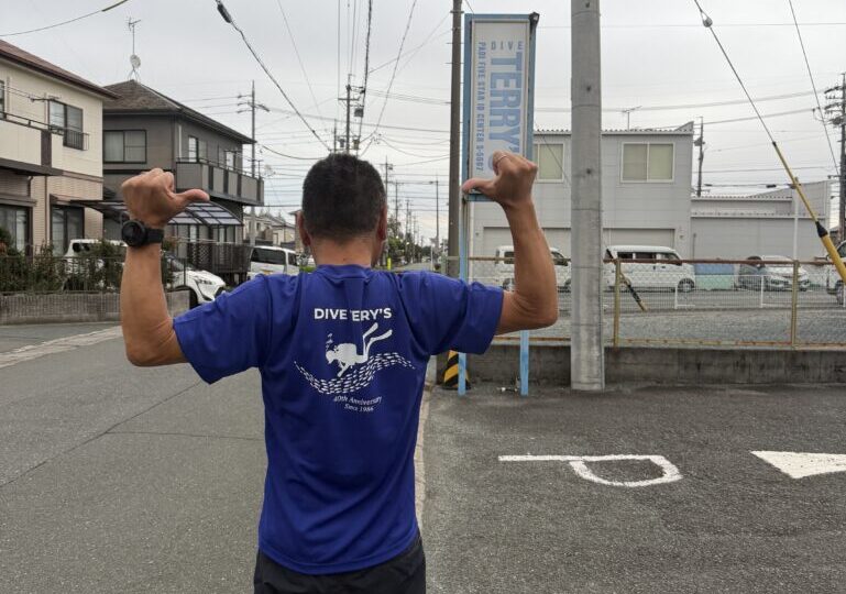 皆さん、こんにちは。 本日も海! 今週は海が続きますよ。 そういえば本日より、テリーズ40周年記念Tシャツを着用開始しました! かっこいいでしょ(^^)!? ダイブテリーズです。 本日は大瀬崎へ行ってきました。 まさきく