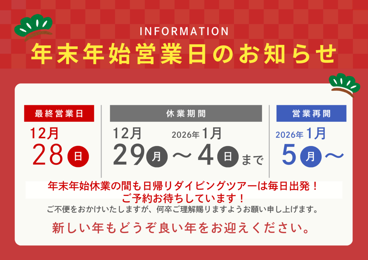 年末年始のダイビングツアー、絶賛受付中!