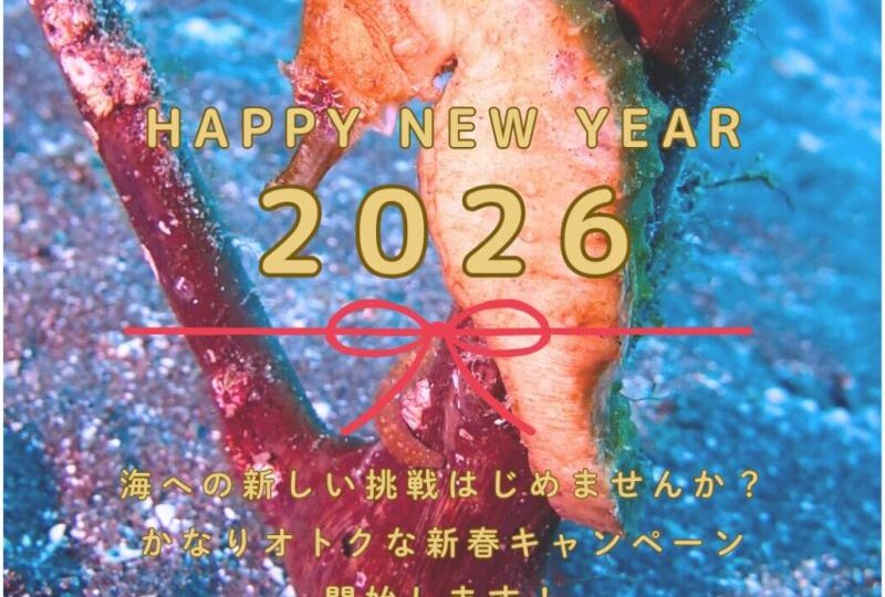 皆さん、こんにちは。 昨日は爆風だけでなく、海からの帰り道に小雪が舞いました。 寒さは確実に増していますが、伊豆ダイビングはここからが面白い季節。 冬眠せずに海に行きませんか? 2026新春キャンペーン、まもなく開始!