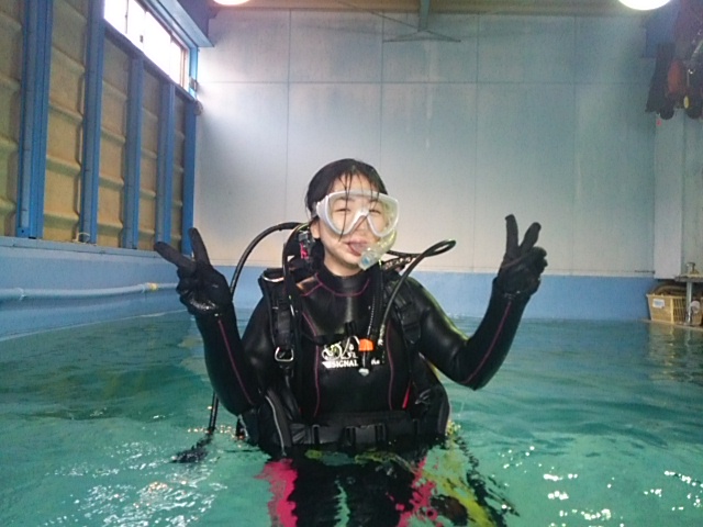 今日は店内プールでダイビングスクールでーす。